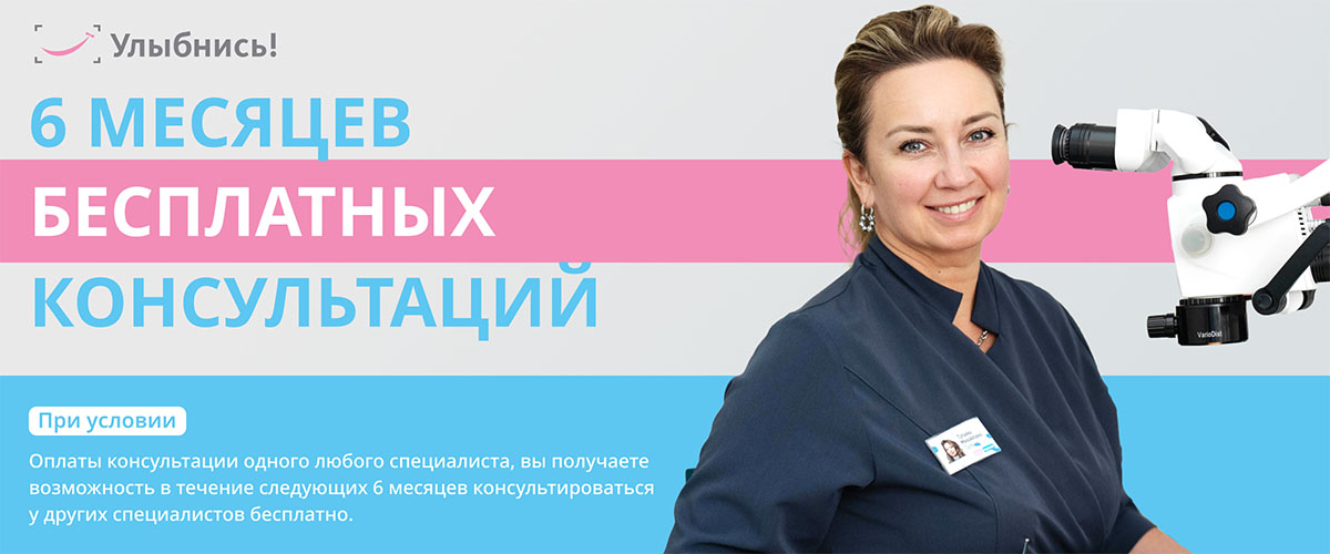 После первого оплаченного визита вы получаете возможность в течение следующих 6 месяцев посещать любых других специалистов клиники абсолютно бесплатно.