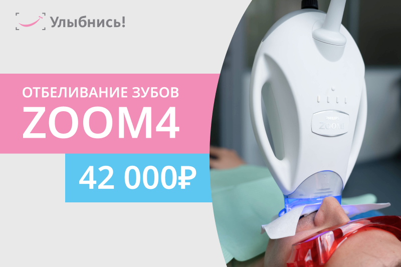 Мы рады представить вам уникальную акцию — профессиональное отбеливание зубов современной системой Zoom 4, теперь всего за 42 000 рублей!
