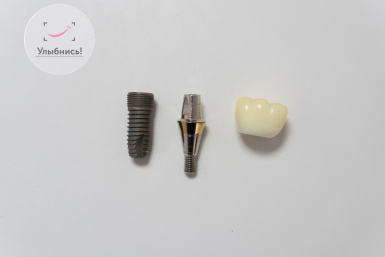 Имплантационные системы, вне зависимости от производителя, состоят из трех основных составляющих. Это непосредственно имплант (имплантат) – титановый стержень, интегрируемый в костную ткань челюсти пациента; зубная коронка, имитирующая наддесневую часть зуба, и абатмент – «переходник» между стержнем и коронкой. Установка имплантационной системы происходит в процессе хирургической операции. В зависимости от сложности клинического случая длится от 1 до 2 часов. Чаще всего выполняется с применением местной анестезии.