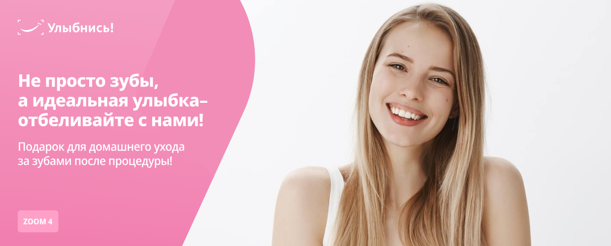 - ZOOM-4 – использование системы с 9,5 % активного вещества. Эмаль становится белее до 8 тонов.