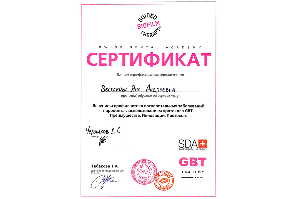 Лечение и профилактика воспалительных заболеваний пародонта с использование протокола GBT