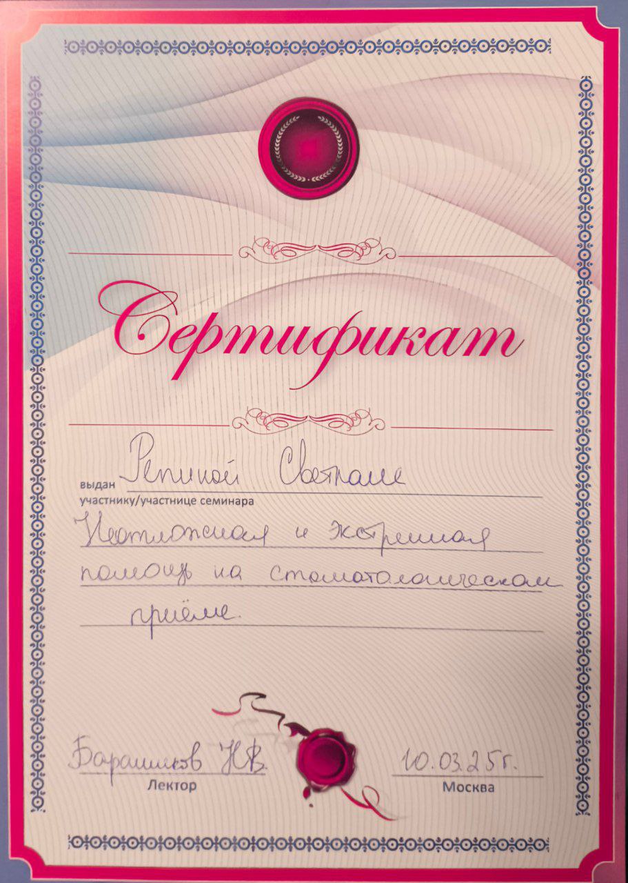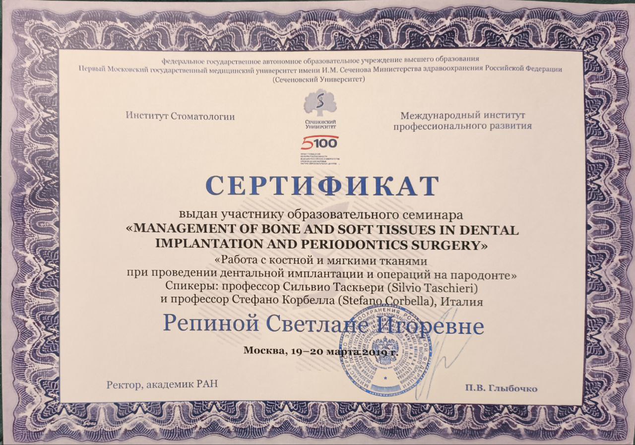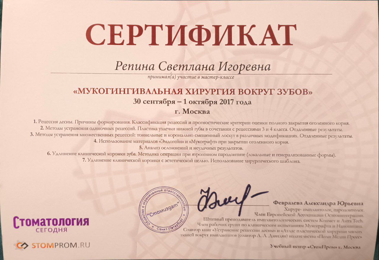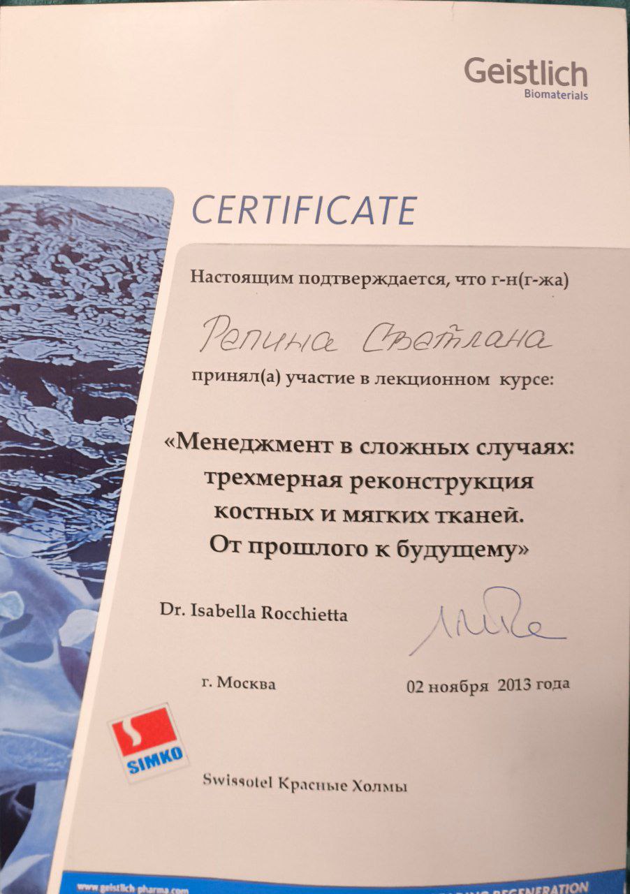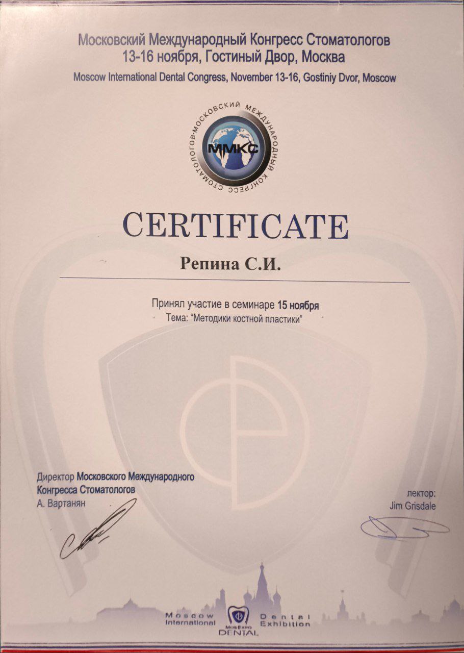 2009-2011г МГМСУ (Московский государственный медико-стоматологический университет). Клиническая ординатура по специальности «Стоматология хирургическая»