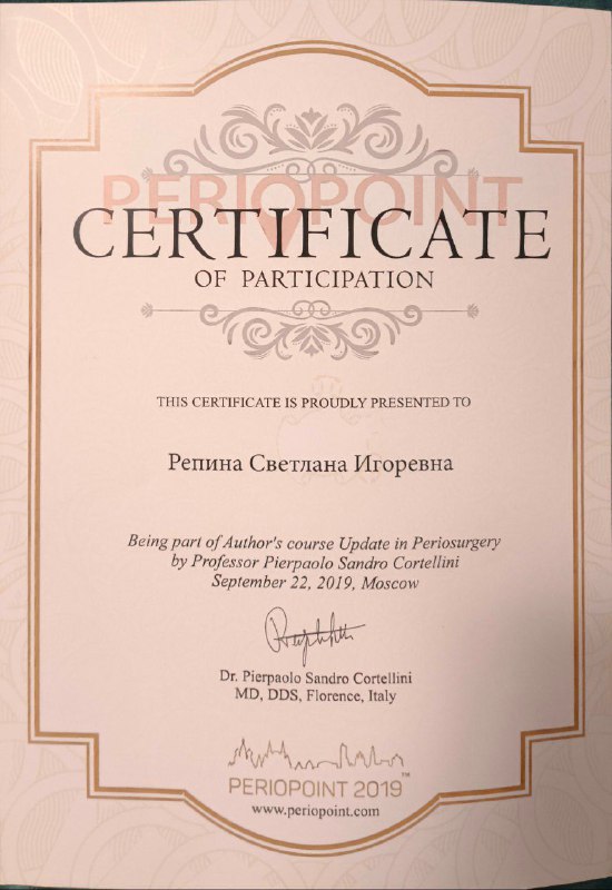 Для меня важно, чтобы лучшие достижения науки претворялись в реальность, и пациенты могли воспользоваться обретенными благами: лечение провожу в соответствии с протоколами, эффективность которых доказана, используя современные материалы и оборудование нашей клиники. Мое призвание – заботиться о здоровье десен, восстанавливать их структуру, удалять поврежденные структуры и не подлежащие восстановлению зубы, и в случае, когда зубы уже утеряны или не могут быть сохранены – установить имплантаты, чтобы пациент снова мог жевать и улыбаться.