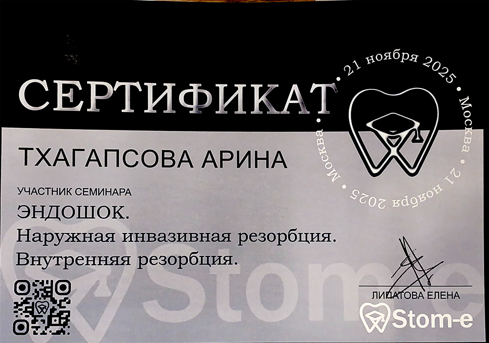 Участник семинара "Эндошок. Наружная инвазивная резорбция. Внутренняя резорбция"